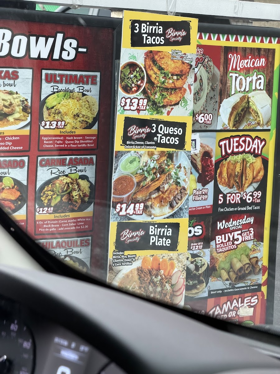 IT COMES IN ORDER OF THREE BIRRIA TACOS WITH CHEESE, SERVED WITH CILANTRO AND ONIONS. IT ALSO COMES WITH A SMALL CUP OF CONSOME TO DIP IN IT.